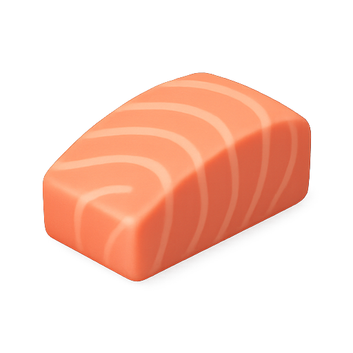 3D-rendered image of salmon sushi piece with a smooth texture and vibrant colors, ideal for food-related marketing and culinary presentations.