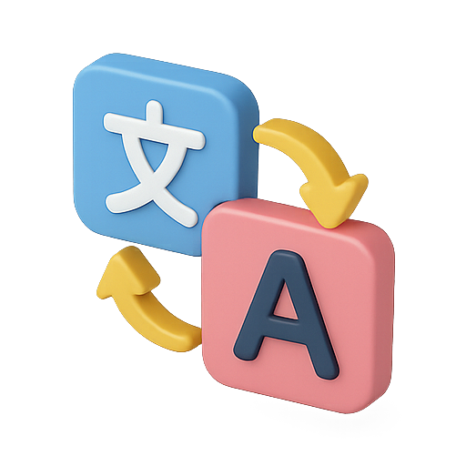 A 3D graphic representing language translation, featuring colorful blocks with letters and arrows indicating conversion, ideal for educational or tech-related content.