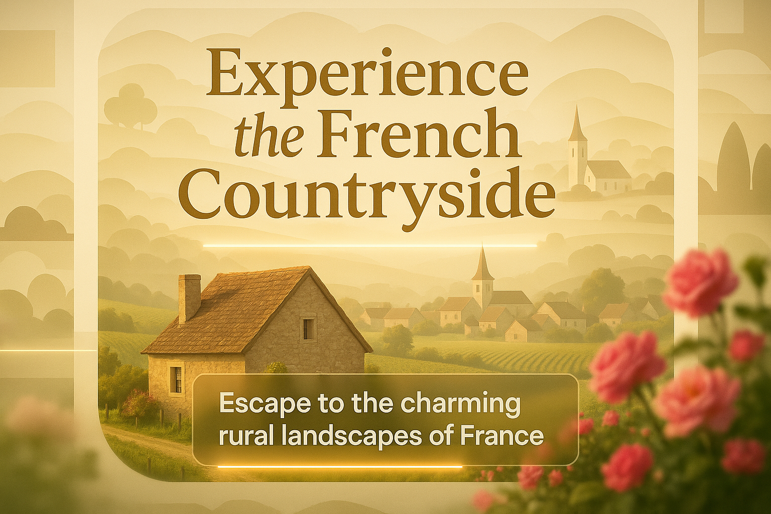 /Collection: /by davooda/Type: PNG/Charming promotional image featuring a picturesque rural landscape of France, designed to evoke a sense of tranquility and adventure, ideal for travel marketing.