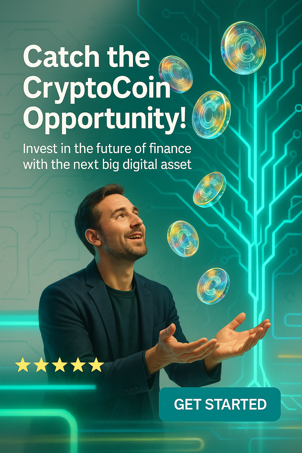 /Collection: /by davooda/Type: PNG/Engaging promotional image showcasing a man excited about cryptocurrency investment, featuring vibrant colors and modern design, ideal for digital marketing campaigns.