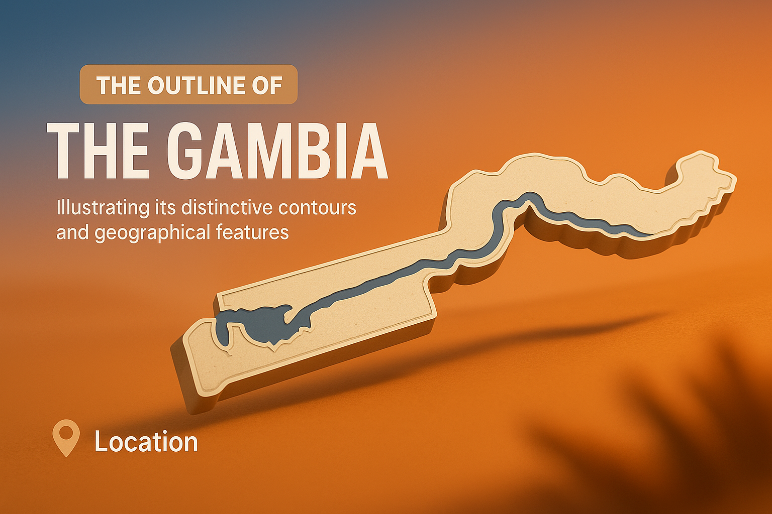 Geographical Illustration of The Gambia with Distinctive Contours