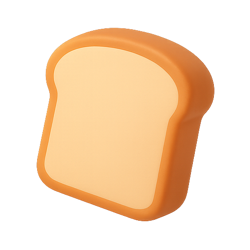 A stylized 3D representation of a loaf of bread, featuring a smooth and simplistic design, ideal for food-related applications, websites, or apps.