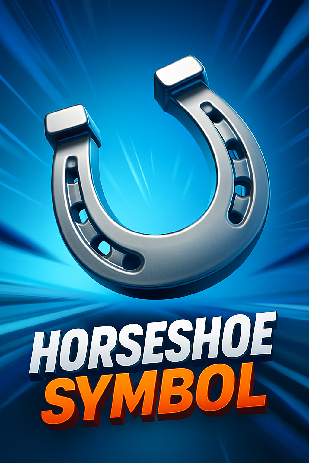 A visually striking 3D illustration of a horseshoe symbol set against a dynamic blue gradient background. The composition features bold typography emphasizing the word 'SYMBOL' in an engaging style.