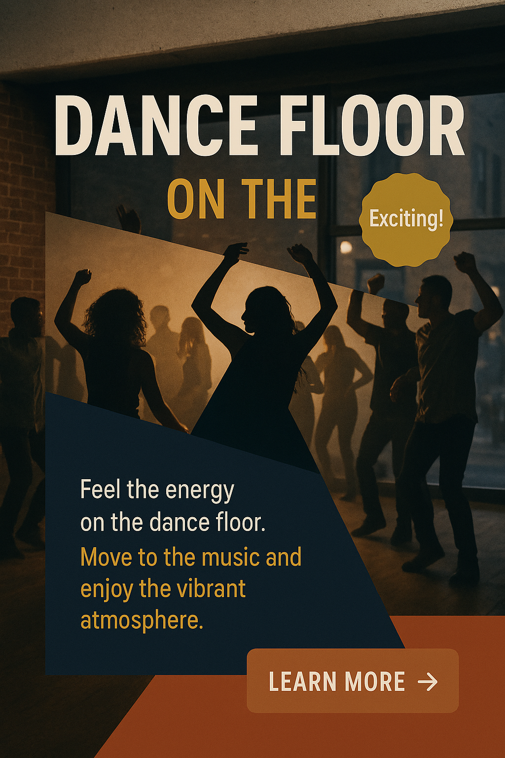 /Collection: /by davooda/Type: PNG/The image showcases silhouettes of people dancing energetically on a vibrant dance floor. A layered composition enhances the dynamic feel, featuring contrasting colors and engaging text elements.
