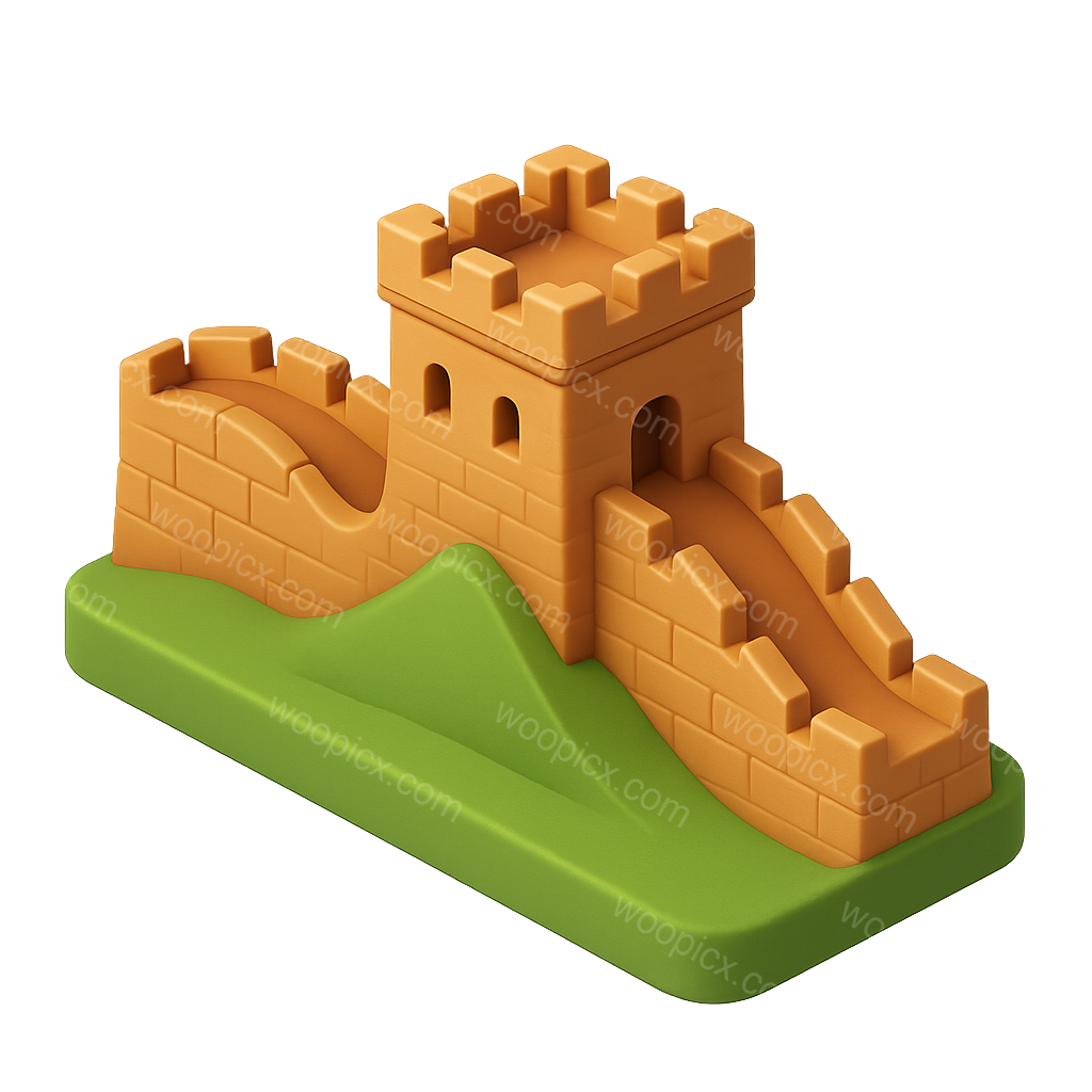 A stylized 3D representation of the Great Wall of China, featuring a castle-like structure on a green base. The design is in a three-quarter isometric view, emphasizing depth.