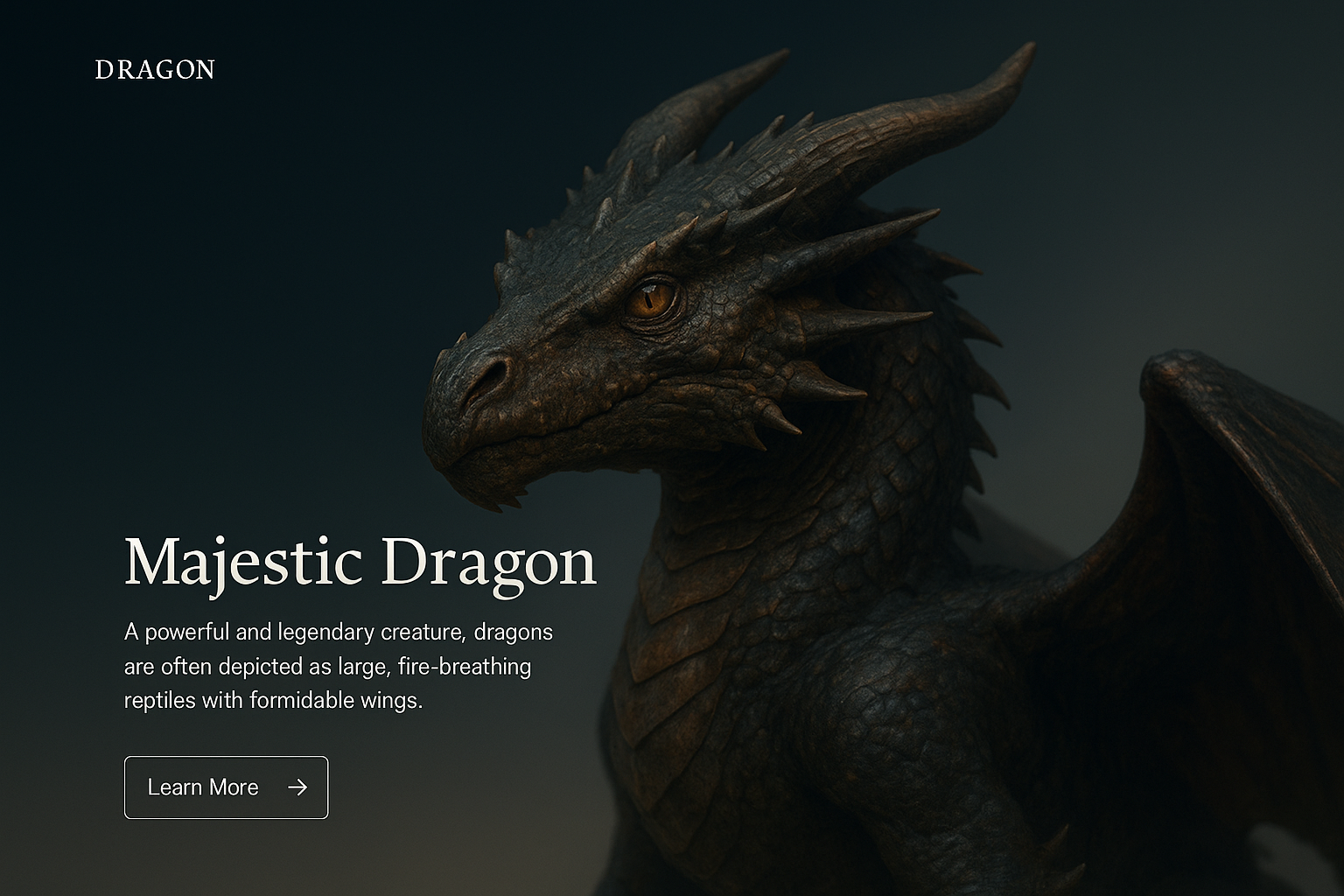 A beautifully detailed dragon illustration with a gradient background. The design features a prominent dragon head, an elegant title, and a call-to-action button.