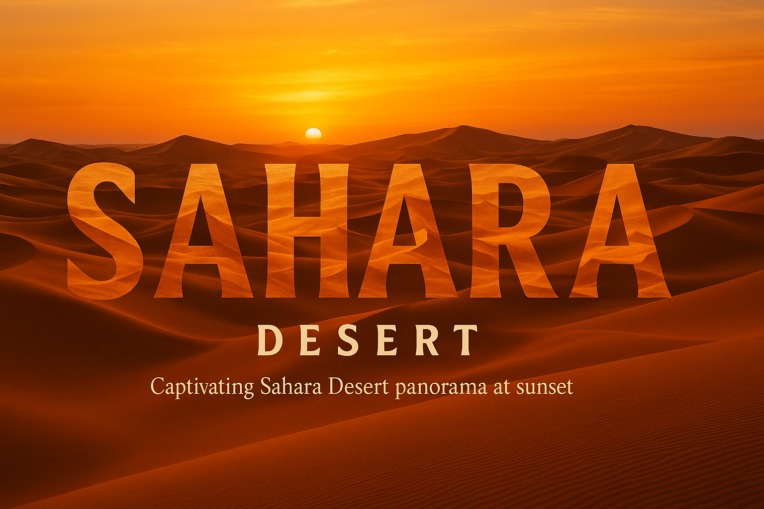 Stunning Sahara Desert Sunset Landscape with Text Overlay
