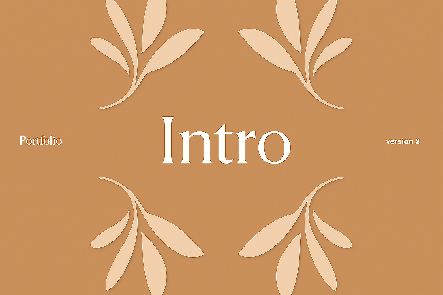The image features a stylish portfolio introduction with a warm background and delicate floral patterns, highlighting the word 'Intro' prominently.