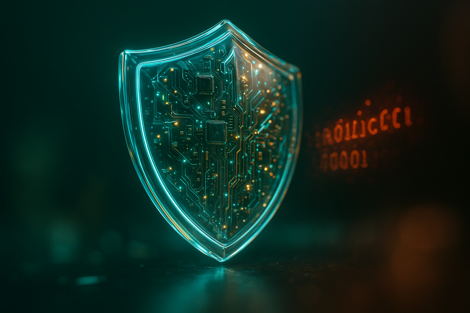 Hyperrealistic Shield Against Cyber Attacks with Glowing Circuitry