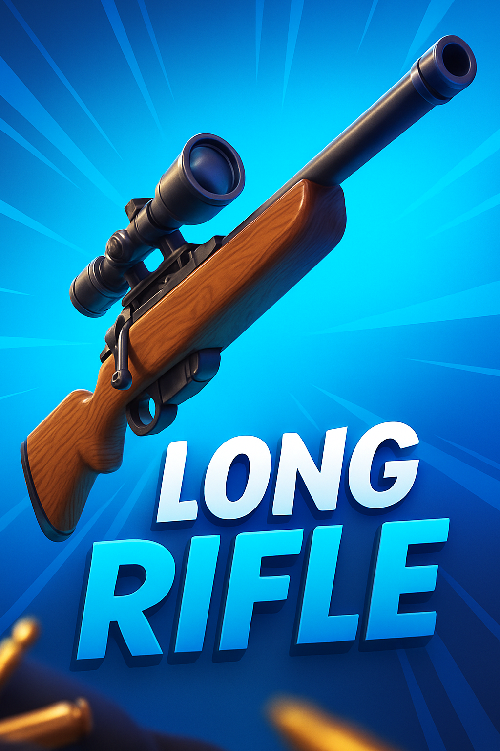 A visually striking 3D illustration of a long rifle with a dynamic perspective, featuring vibrant blue hues and energetic lines radiating outward, creating a sense of motion.