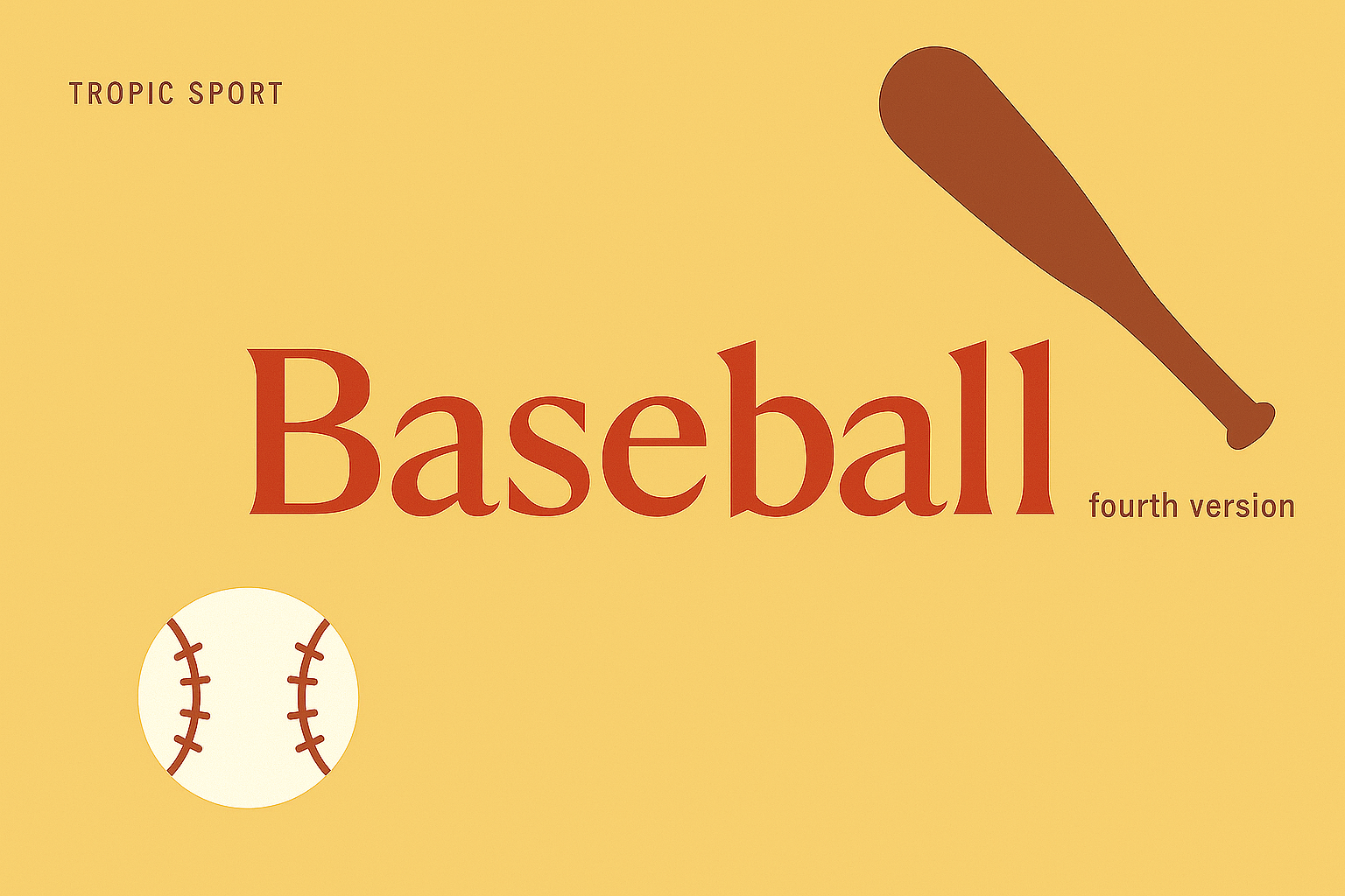 A creative design featuring a baseball bat and ball against a yellow background. The word 'Baseball' is prominently displayed, emphasizing a sporty theme.