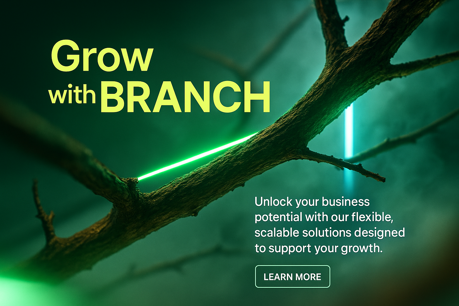 /Collection: /by davooda/Type: PNG/A vibrant carousel slide featuring a glowing branch with neon accents. The design highlights key messages with a professional aesthetic, showcasing business growth solutions.