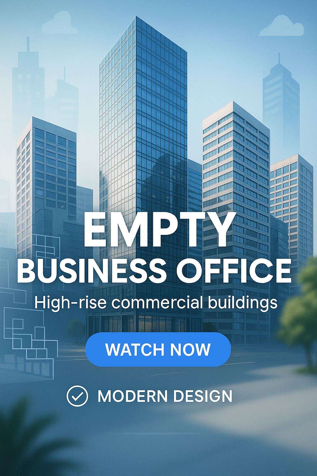 Modern Business Office Promotional Graphic Featuring High-Rise Buildings