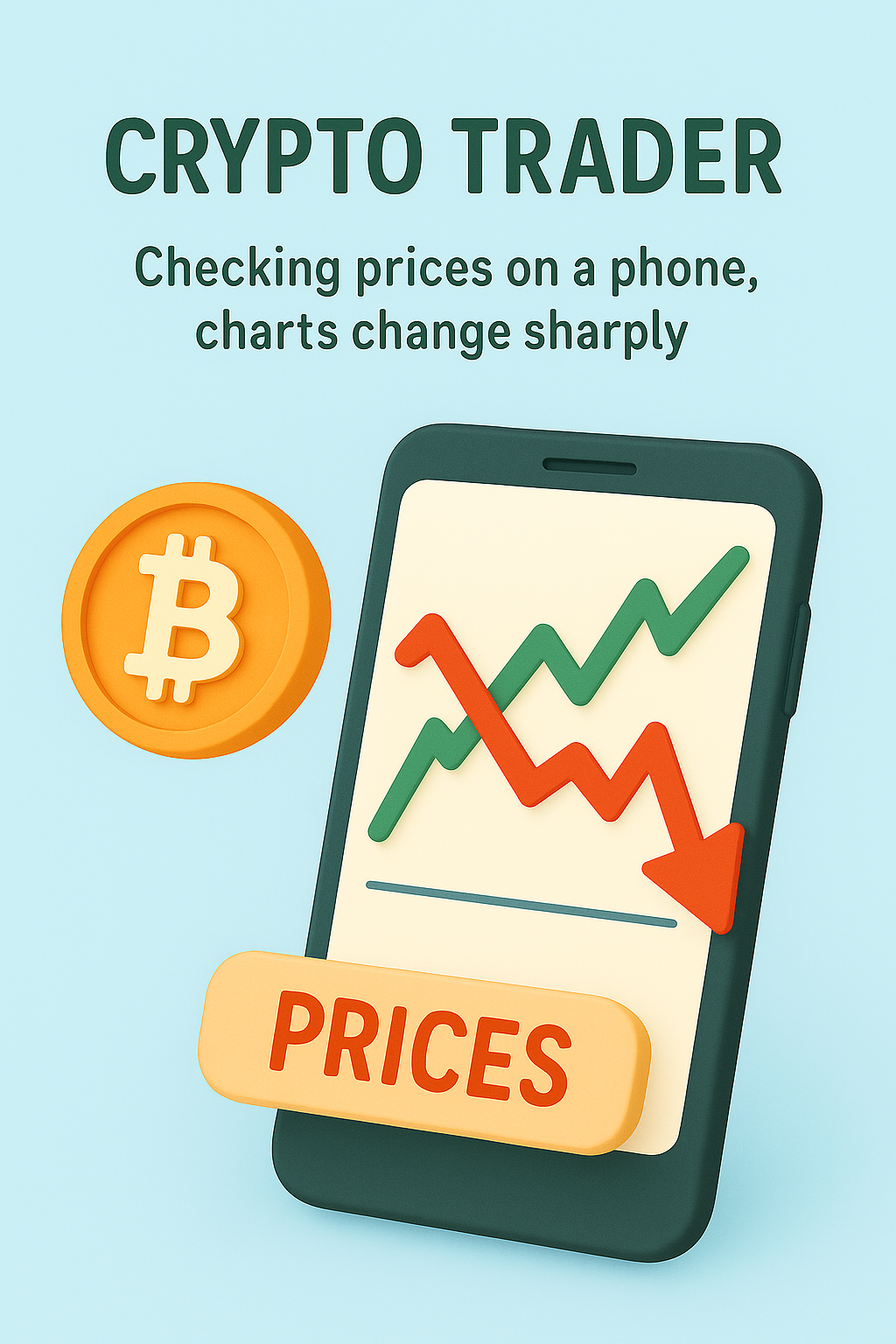 /Collection: /by davooda/Type: PNG/A vibrant digital illustration showcasing a smartphone displaying price trends for cryptocurrency. Ideal for finance-related content or educational materials on trading.