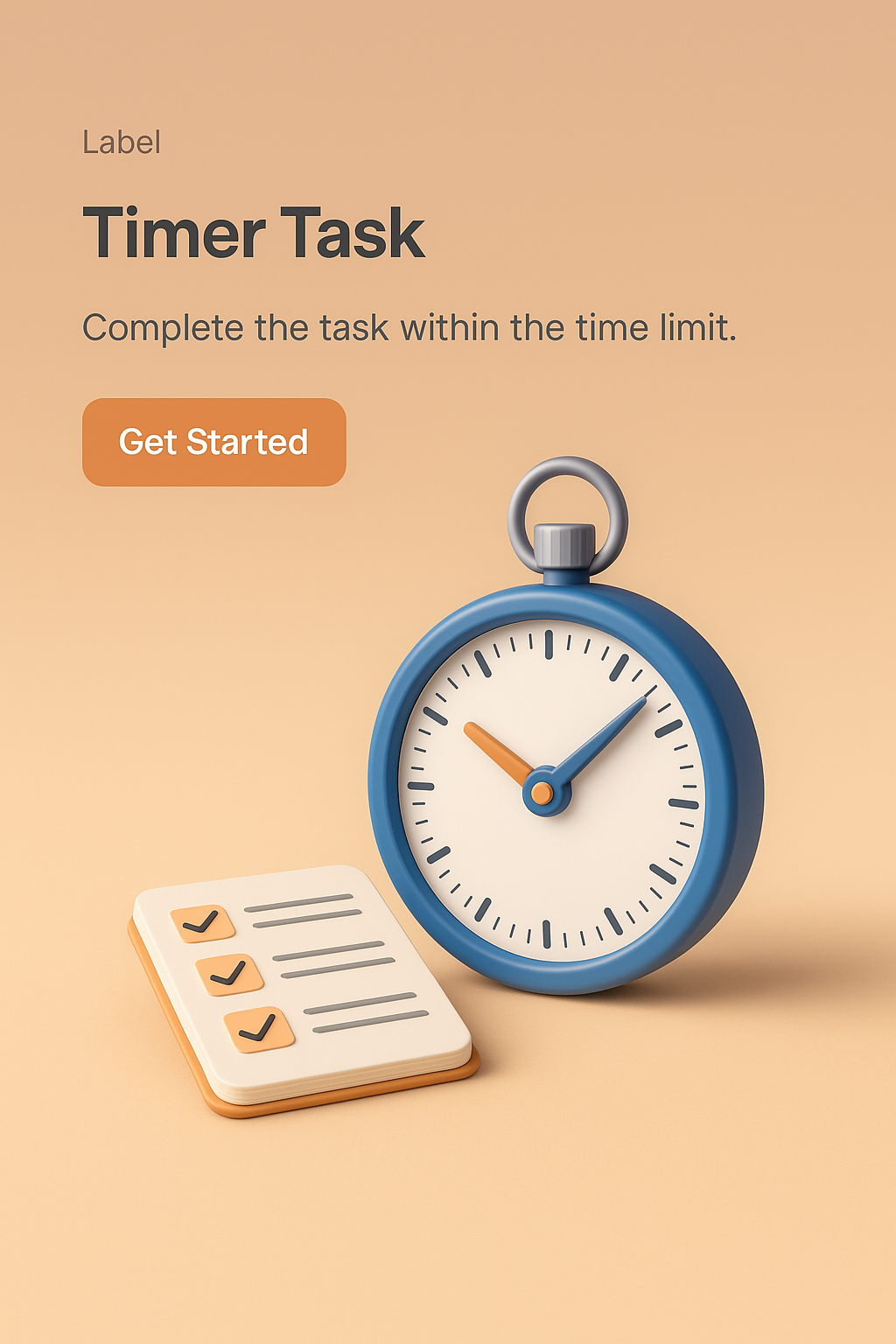 A simple yet detailed 3D illustration of a timer task, featuring a stopwatch and checklist on a smooth gradient background. The design emphasizes realism with readable text elements.