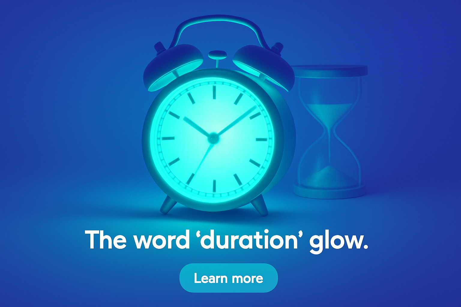 /Collection: /by davooda/Type: PNG/A vibrant composition featuring a glowing clock and hourglass, bathed in neon aquamarine and blue hues, emphasizing the concept of 'duration'. The scene is illuminated with a soft, fluorescent glow, creating a captivating atmosphere.
