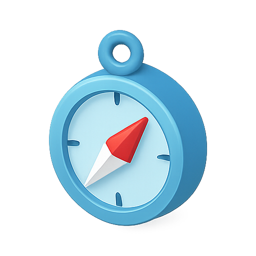 A 3D stylized compass icon featuring a blue casing and a red pointer, ideal for navigation-related applications and digital interfaces.
