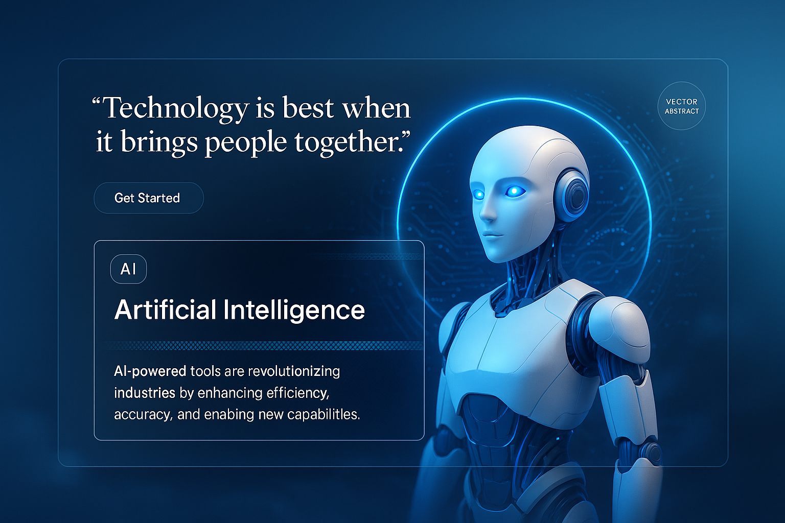 /Collection: /by davooda/Type: PNG/A futuristic 3D illustration showcasing an AI robot with a glowing halo, integrated text blocks, and an action button. The design emphasizes technology and innovation in a cohesive layout.