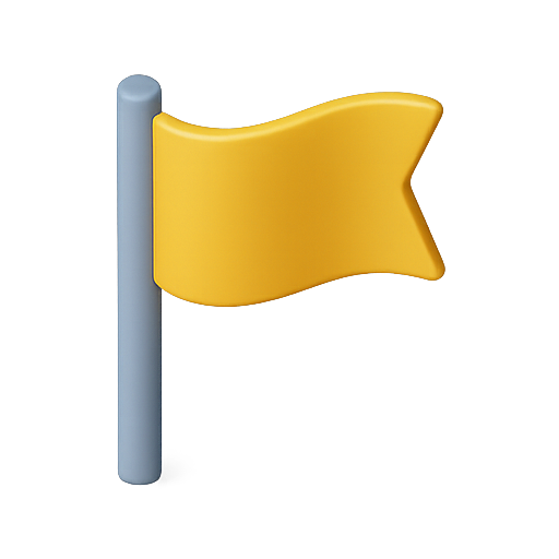 A 3D-rendered yellow flag icon on a gray pole, showcasing a simple and clean design ideal for digital communication or symbolic representation.
