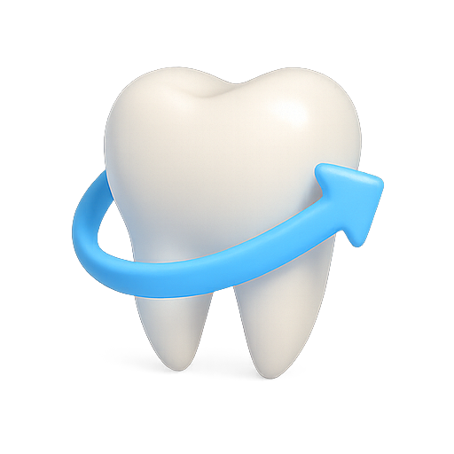 A 3D graphic representation of a tooth surrounded by a blue upward arrow, symbolizing dental health improvement or growth, suitable for dental health promotions or educational content.