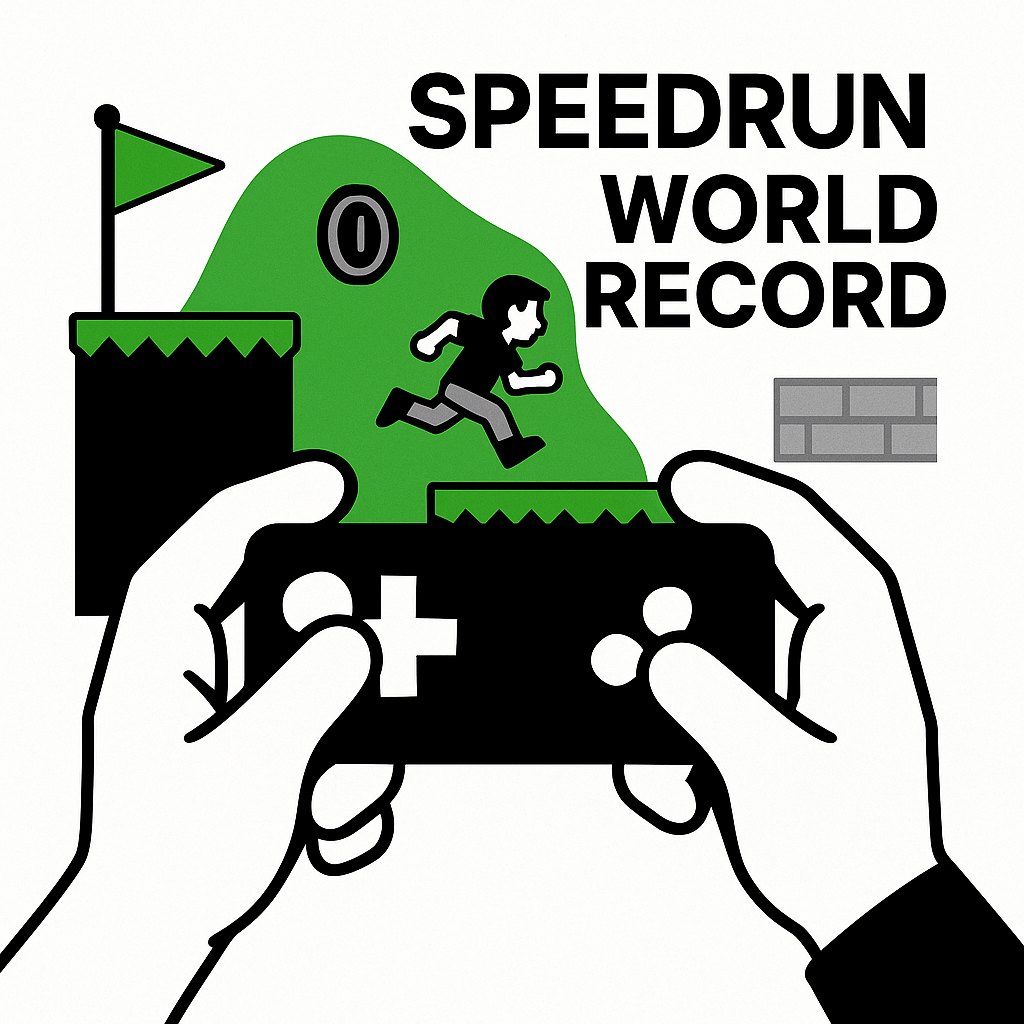 /Collection: /by davooda/Type: PNG/Stylized graphic depicting a gaming controller with a speedrun theme, showcasing a character running against a level backdrop. Ideal for gaming-related content and promotional use.