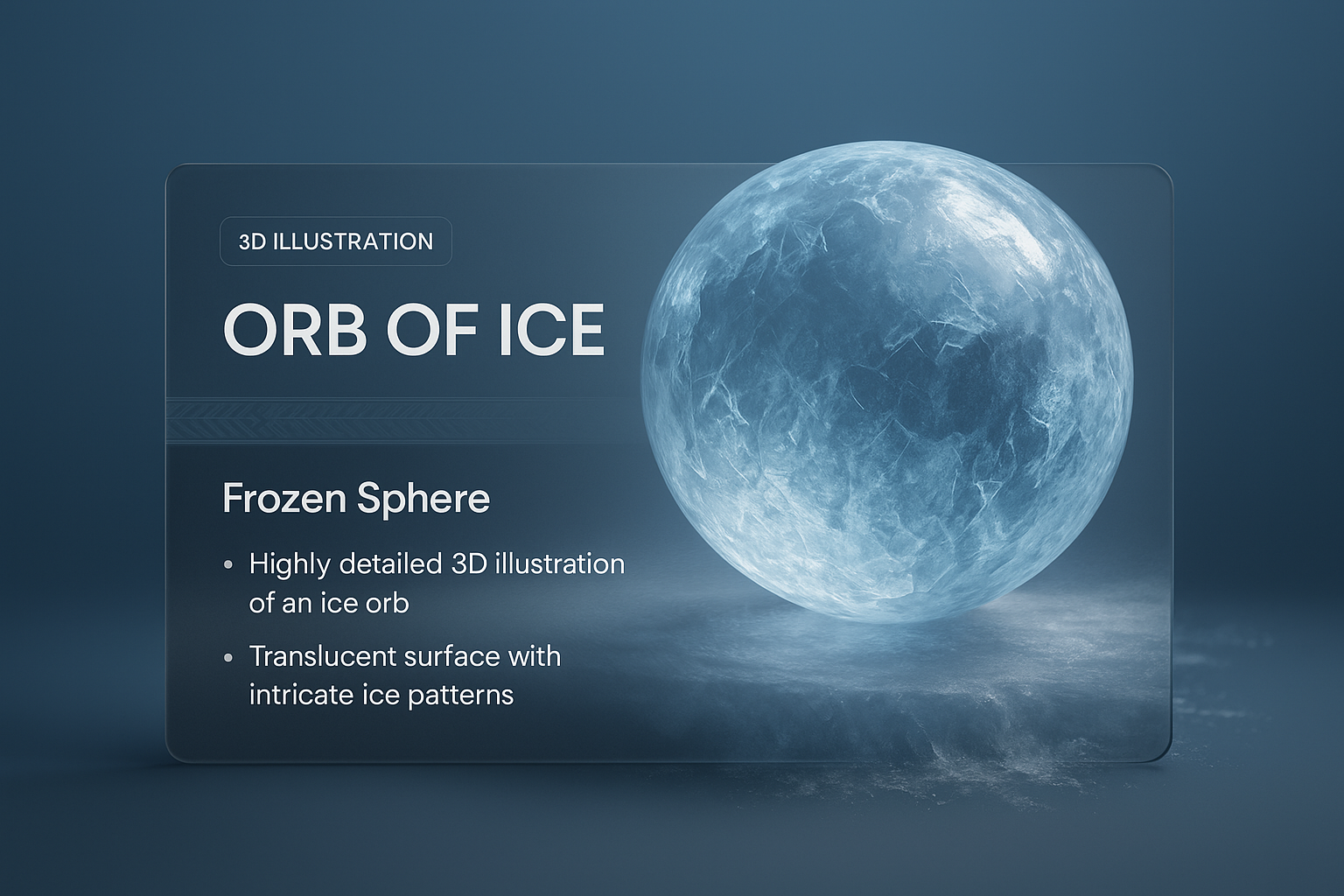A captivating 3D illustration featuring a translucent orb of ice with intricate patterns. The design integrates a sleek, dark overlay that enhances the visual appeal.
