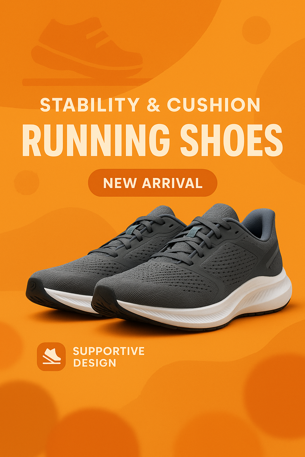 Promotional Graphic for New Running Shoes Featuring Stability and Cushion