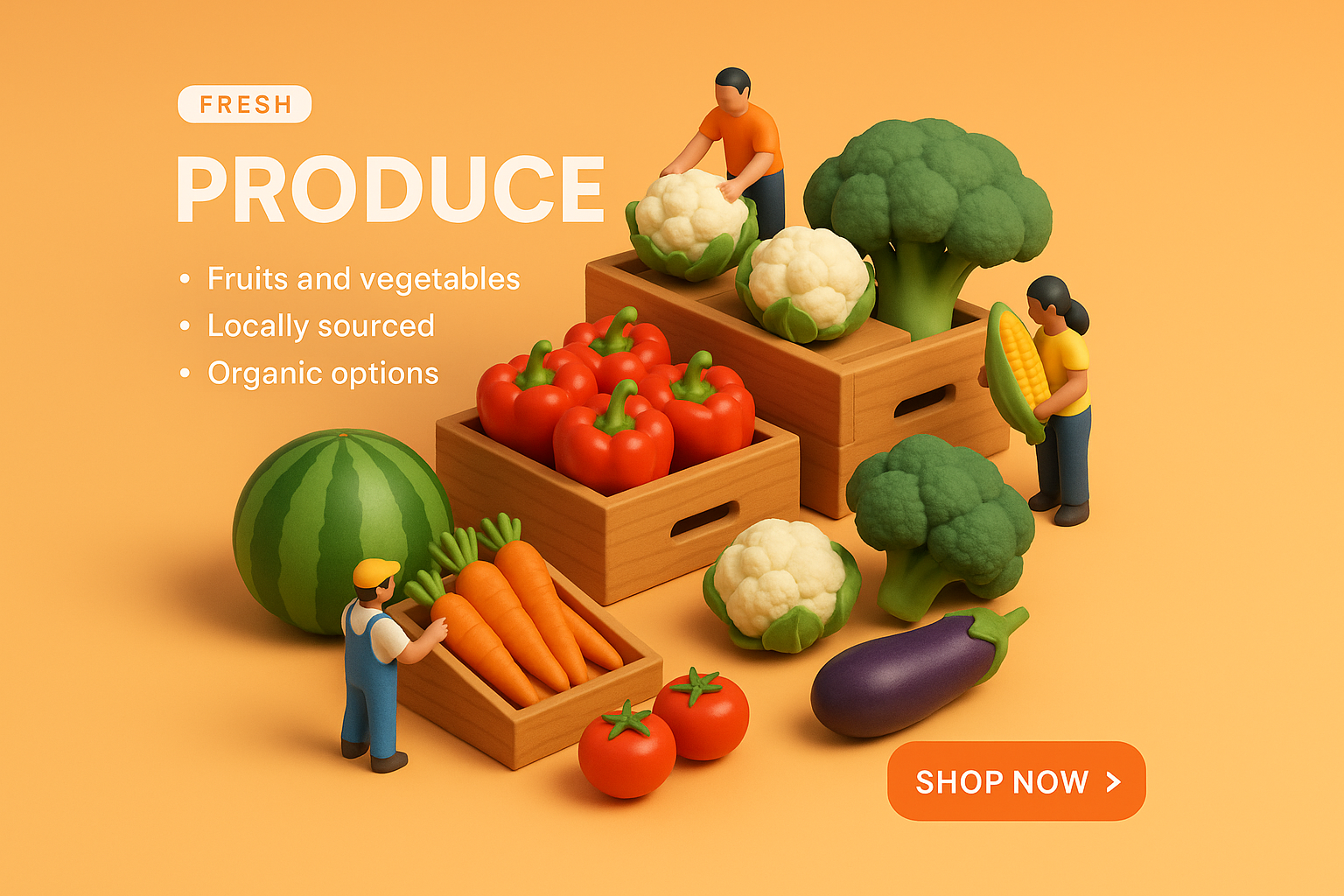 Colorful 3D Scene of Fresh Produce with Miniature Characters
