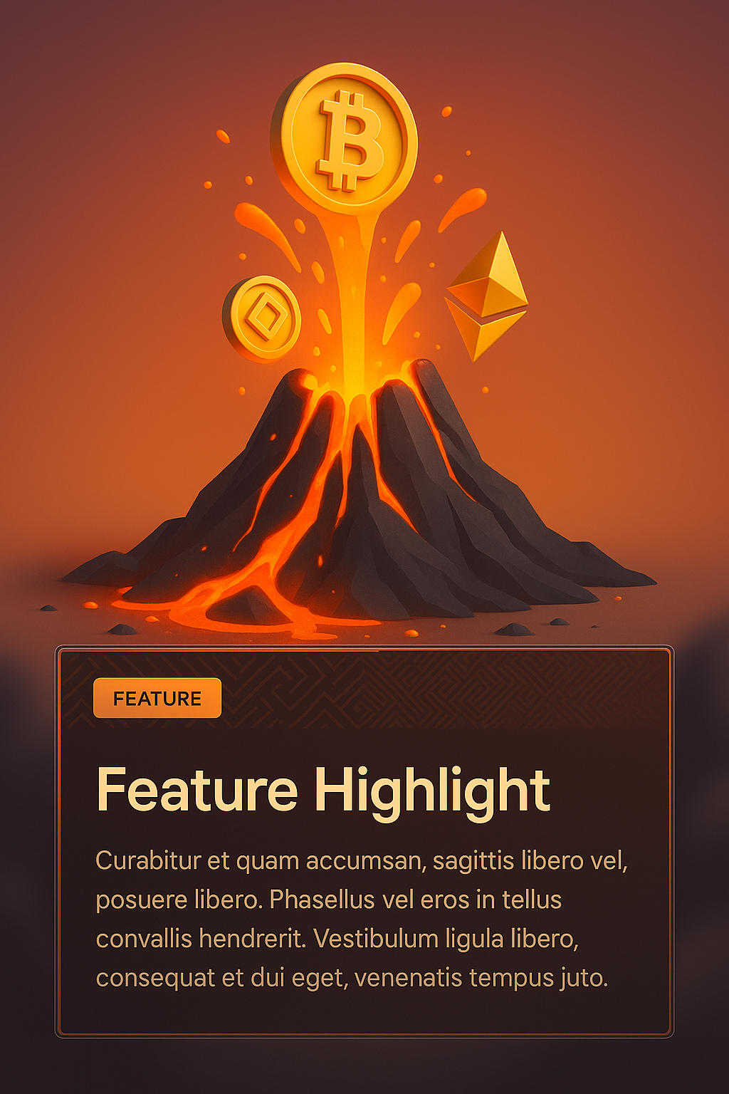 /Collection: /by davooda/Type: PNG/A vibrant 3D illustration of a volcano erupting cryptocurrency symbols like Bitcoin and Ethereum. The background features a smooth gradient, enhancing the dynamic visual.