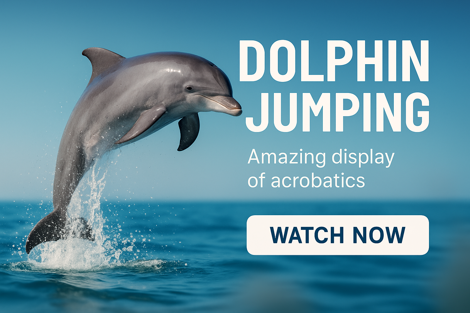Vibrant image featuring a dolphin leaping above the water, showcasing its agility and grace. Ideal for marine life promotions or wildlife documentaries.