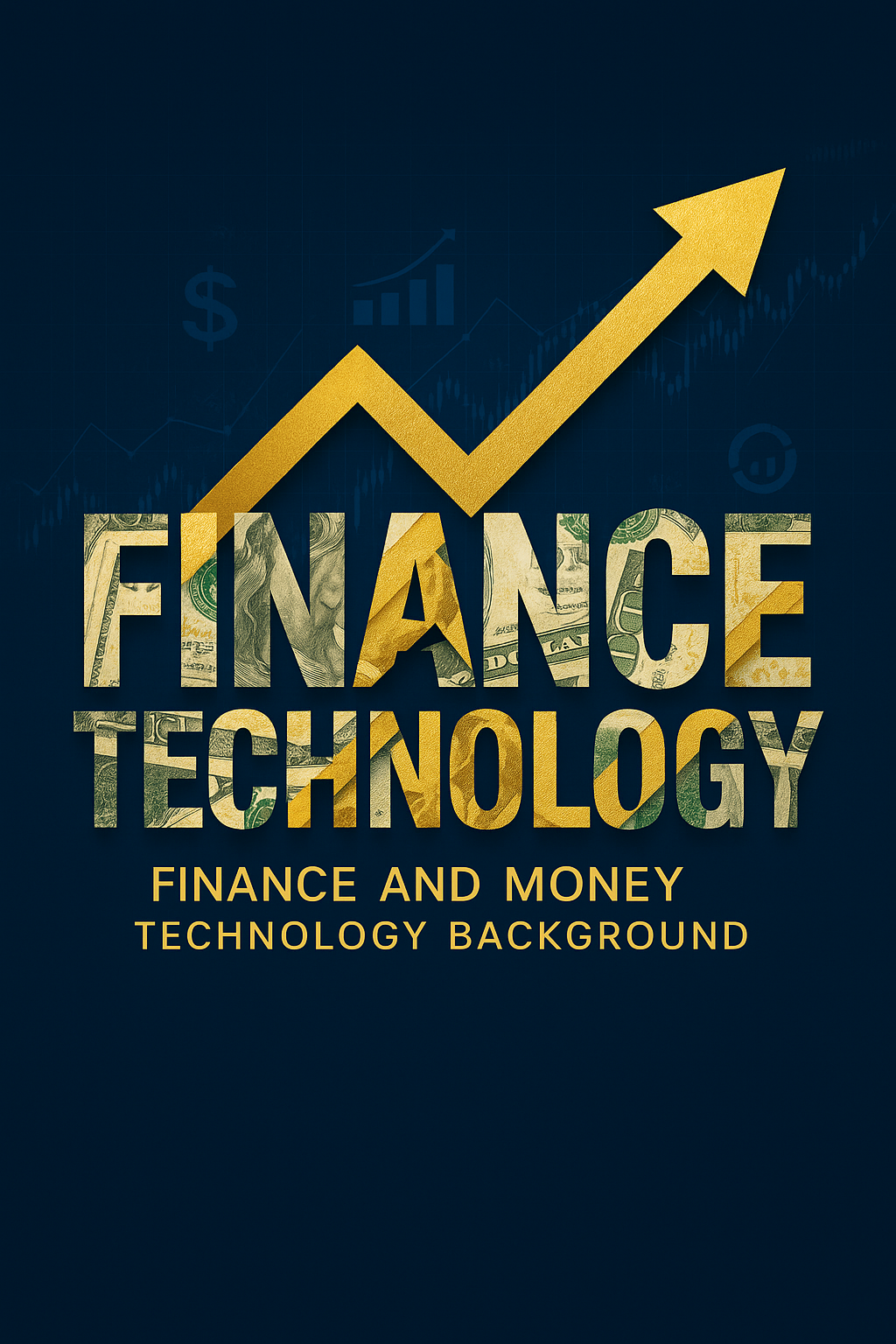 /Collection: /by davooda/Type: PNG/Striking graphic representing finance technology, featuring bold text and upward trend arrows, ideal for financial services marketing and technology presentations.