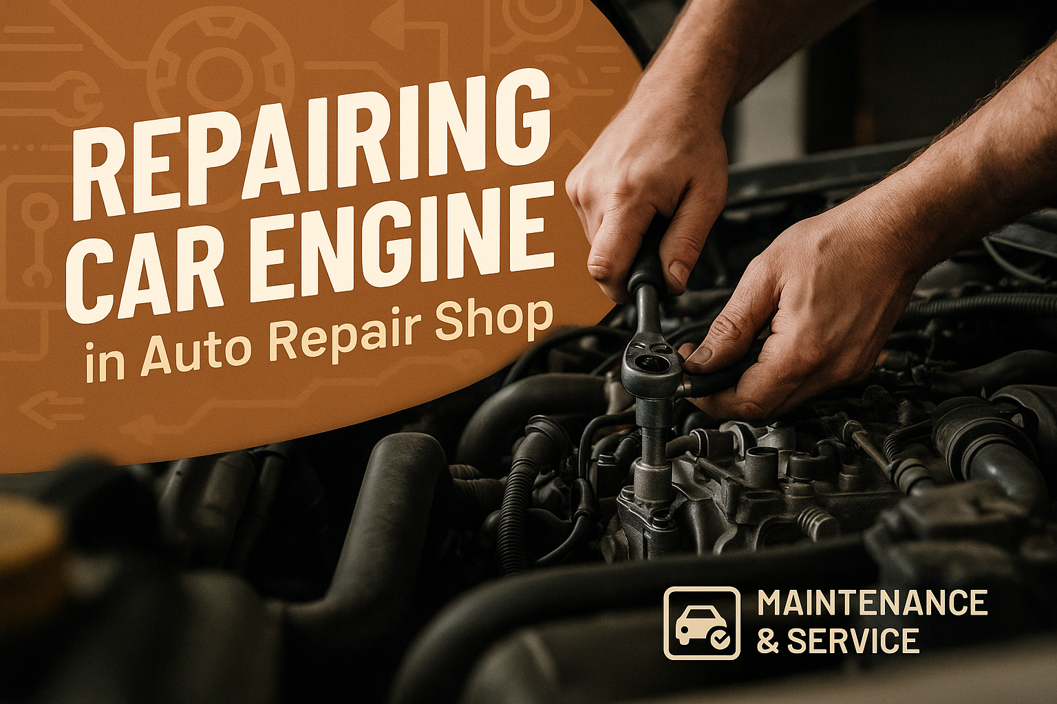 Automotive Maintenance Graphic Featuring Car Engine Repair