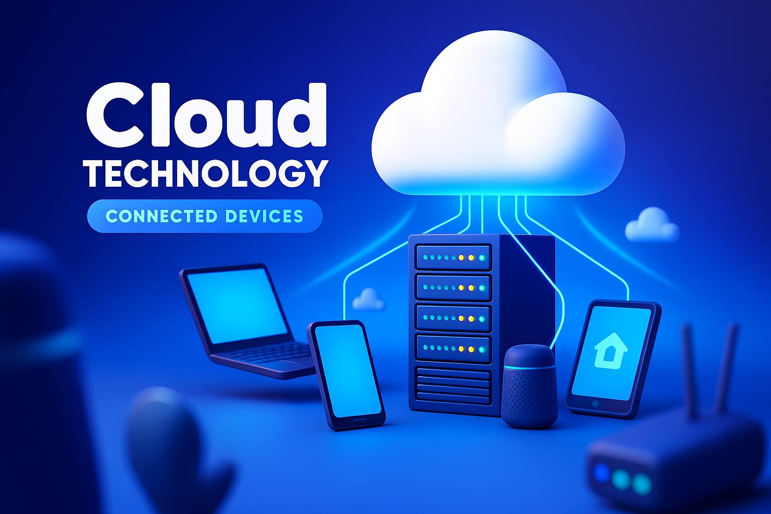 Dynamic 3D Illustration of Cloud Technology and Connected Devices