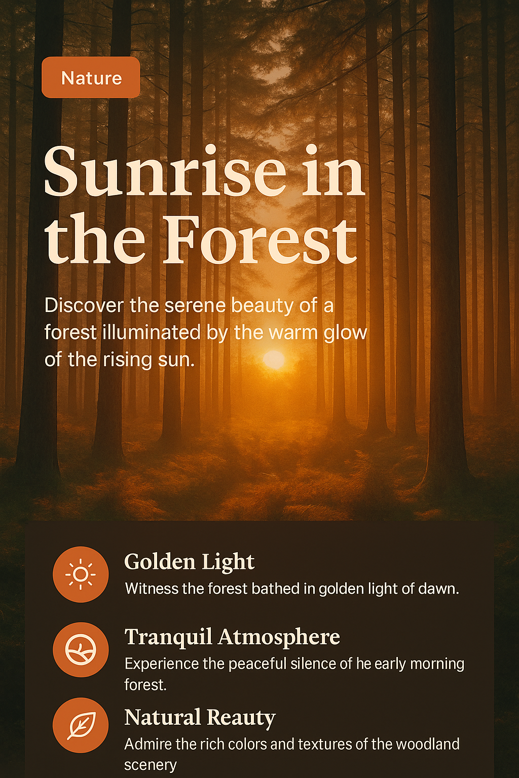 Nature-Themed Promotional Graphic Highlighting Forest Sunrise
