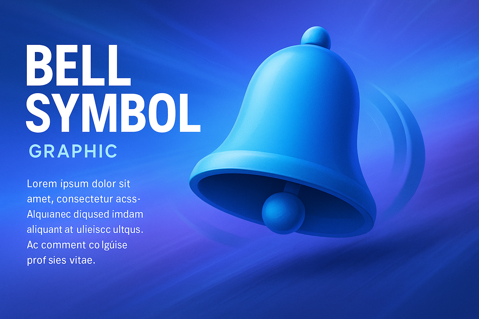 A vibrant blue bell symbol set against a dynamic gradient background. The design features layered composition with clear text and an engaging aesthetic.
