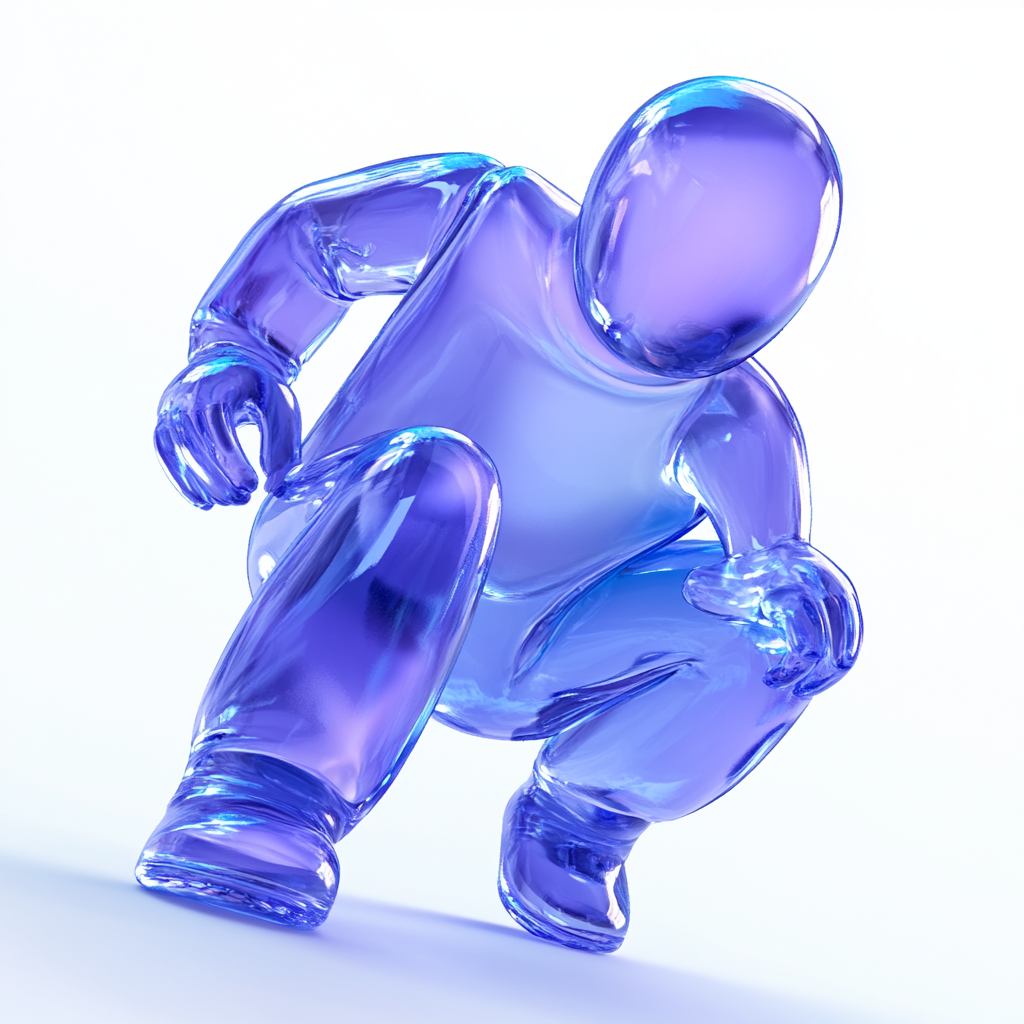 Stylized 3D Glass Figure in Motion