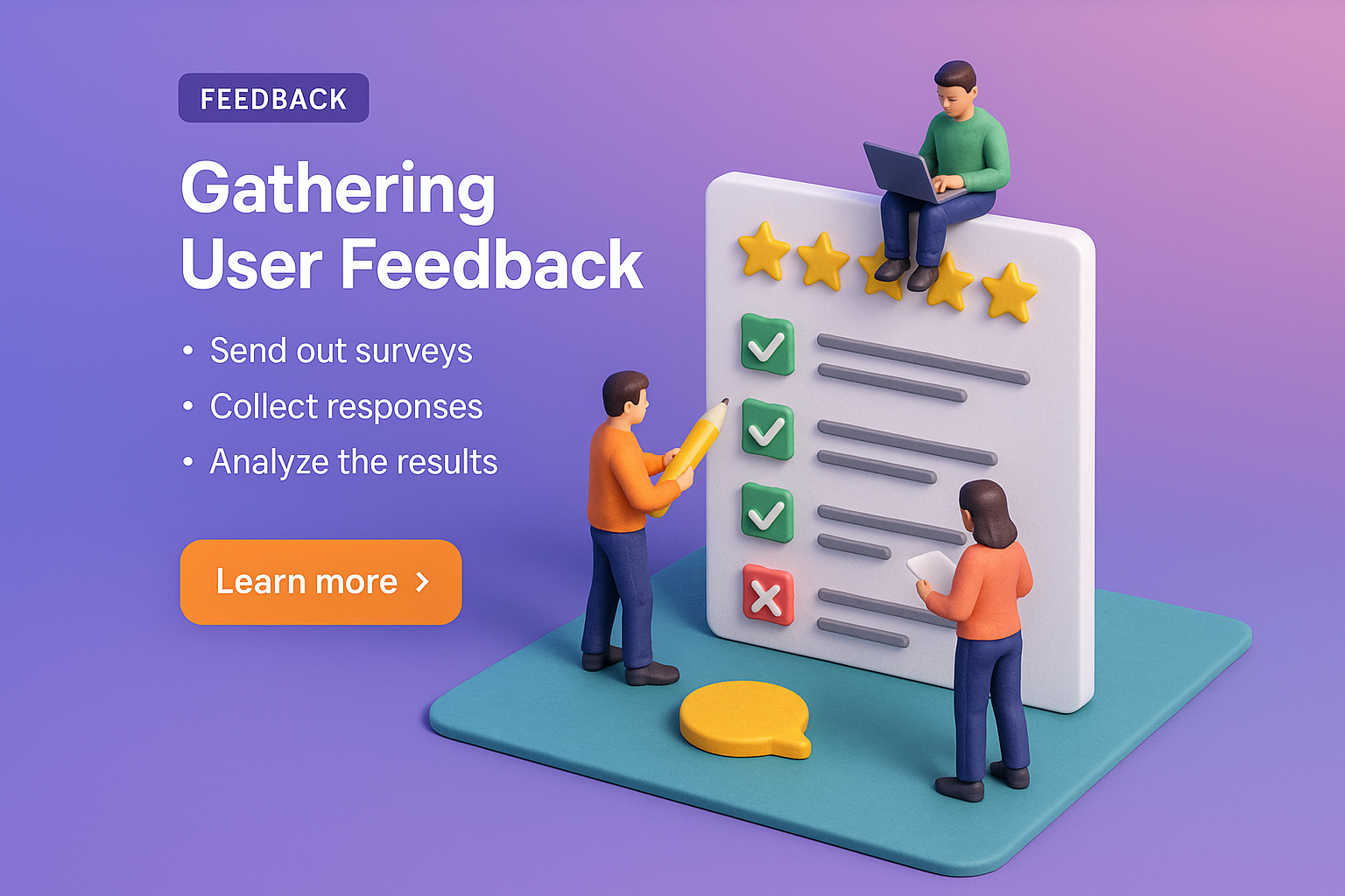 Minimalist 3D Scene Depicting User Feedback Gathering