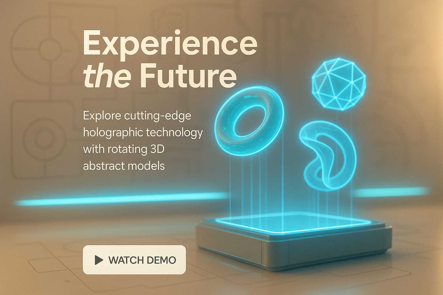 Engaging promotional graphic featuring 3D holographic models, designed to highlight innovative technology. Ideal for tech demos and marketing materials.