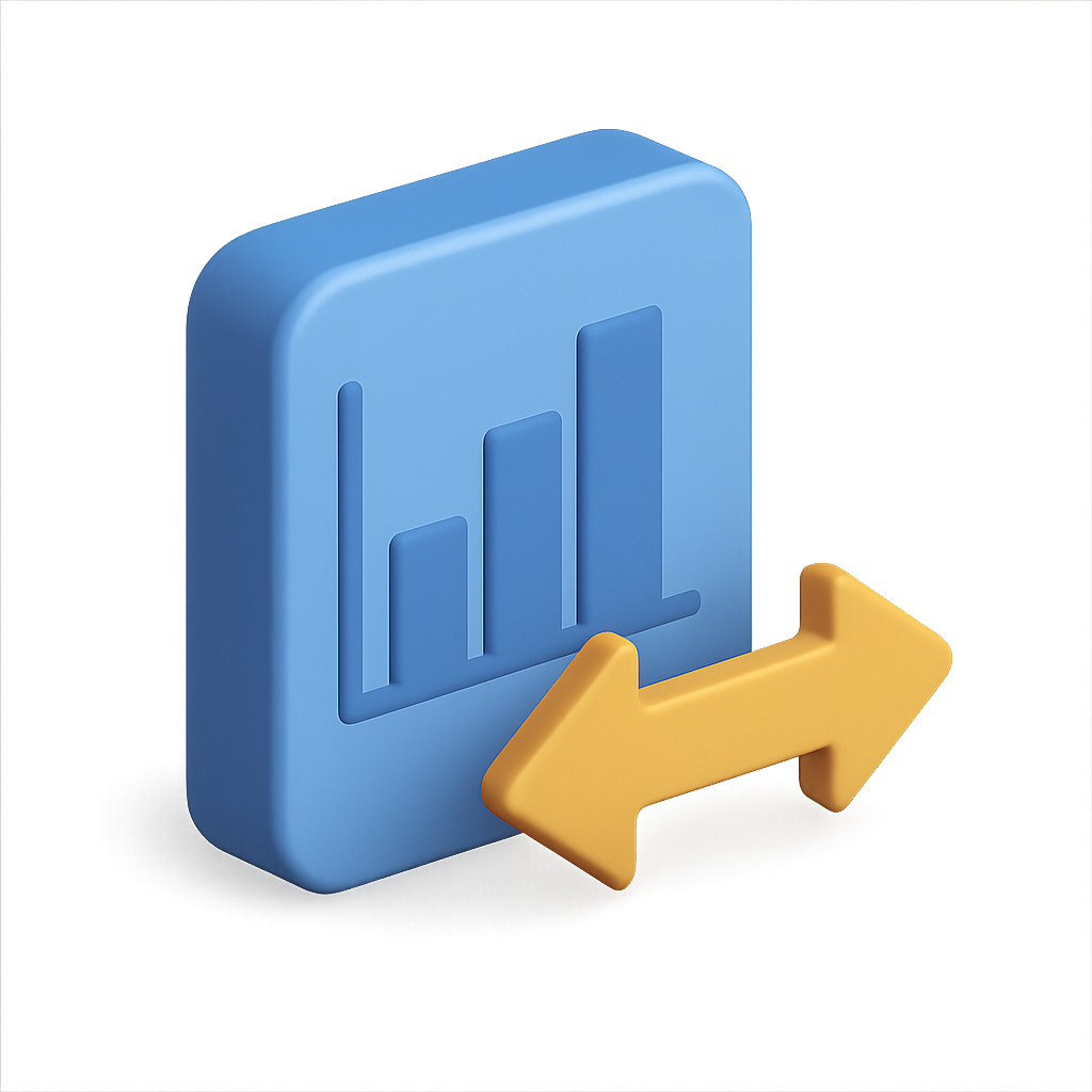 This image features a 3D icon representing breadth, showcasing a volumetric, isometric design. The icon has a blue background with a yellow double arrow, symbolizing measurement.