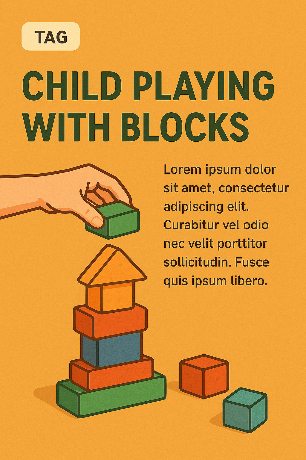 A colorful illustration depicting a child's hand stacking building blocks, ideal for educational content, children’s products, or parenting resources.