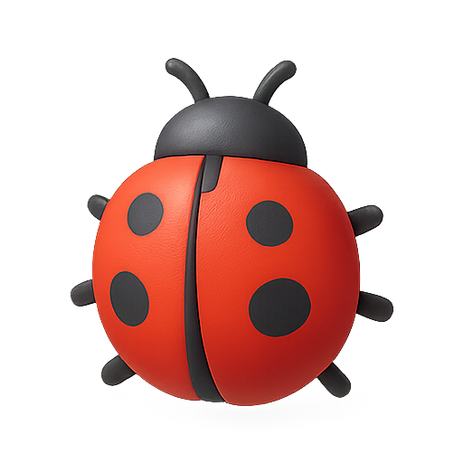 A playful 3D rendering of a cartoon ladybug toy, featuring bright red and black colors. Ideal for children's products or playful branding.