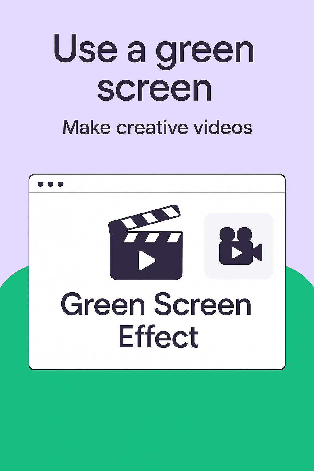 /Collection: /by davooda/Type: PNG/Informative graphic showcasing the concept of using a green screen for creative video production. The design features playful colors and icons, ideal for content creators and filmmakers.