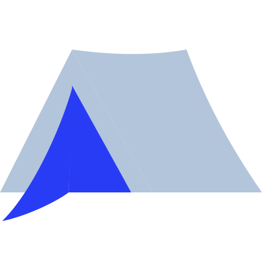 polish-blue simple icon: tent, camping, outdoors, travel, adventure