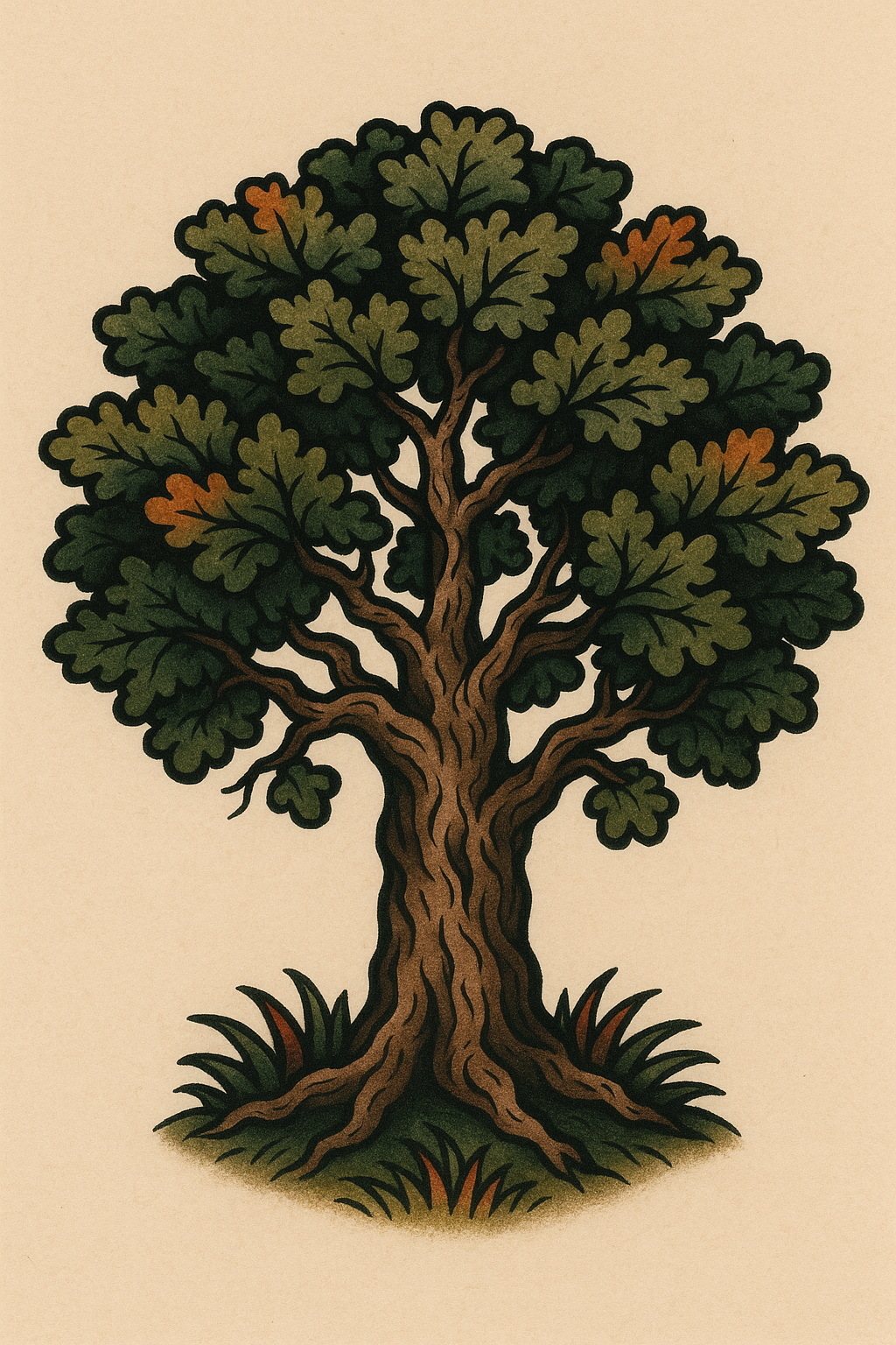 Dynamic Oak Tree Illustration with Vibrant Background