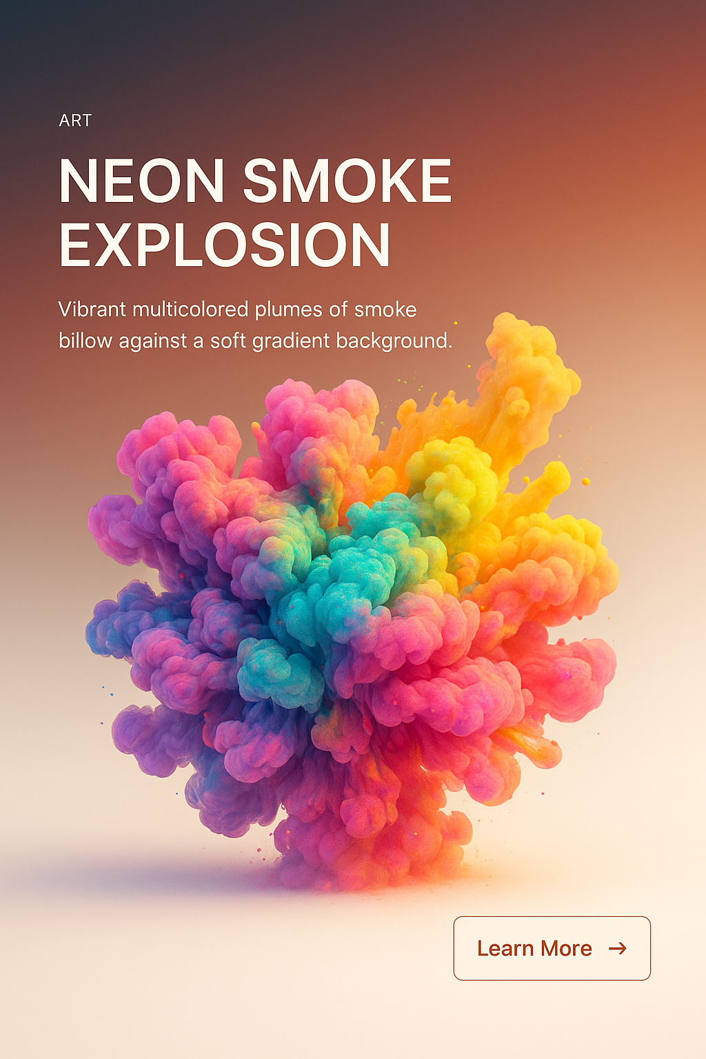 /Collection: /by davooda/Type: PNG/An explosion of multicolored neon smoke billows against a soft gradient background, creating a vibrant and dynamic visual. The composition merges realism with abstract art, ideal for a modern web design.