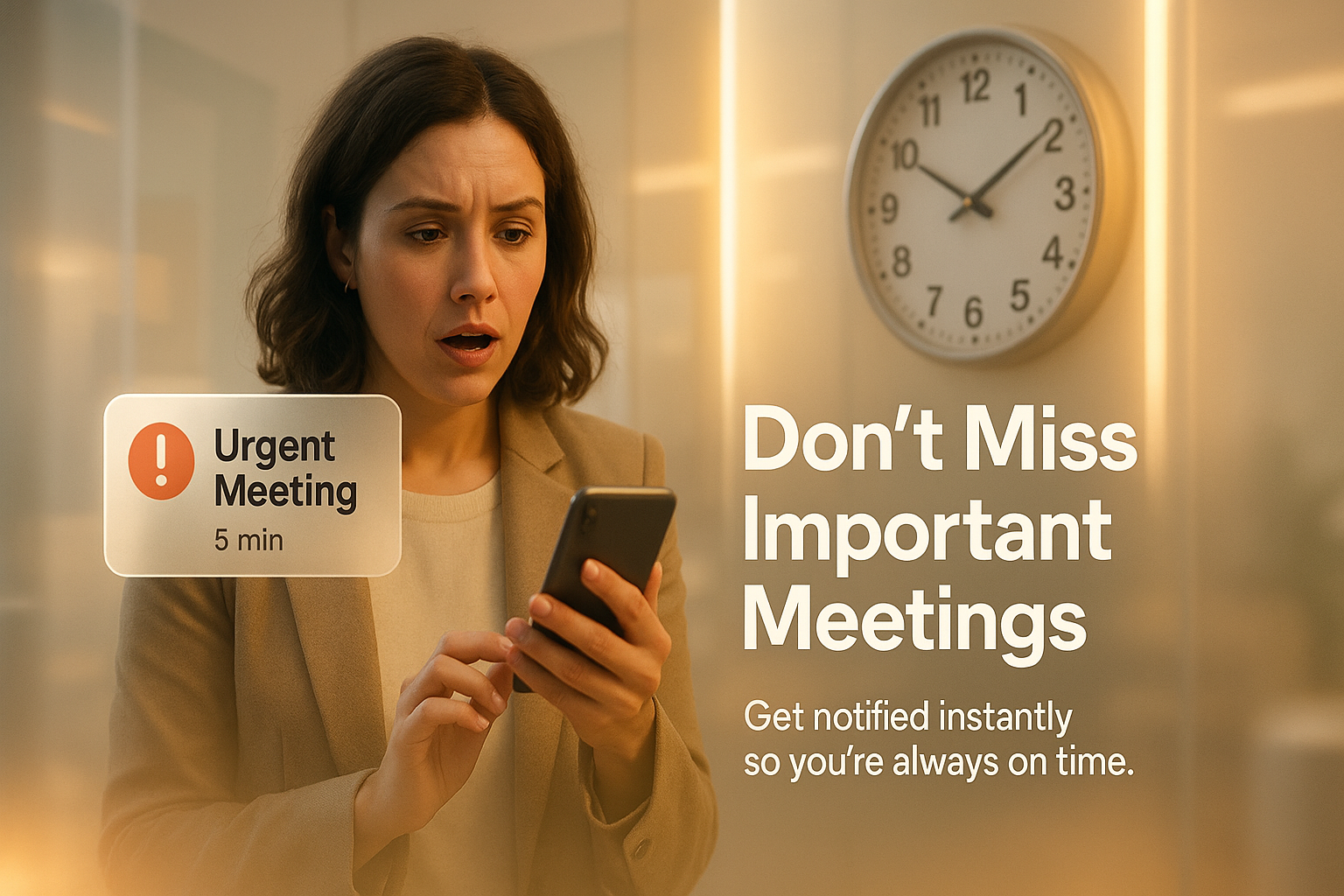/Collection: /by davooda/Type: PNG/A visually engaging image depicting a person surprised by an urgent meeting notification on their phone, emphasizing the importance of timely communication. Ideal for corporate or productivity-related contexts.
