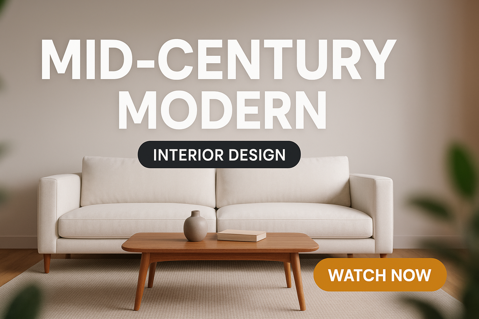 /Collection: /by davooda/Type: PNG/Promotional graphic showcasing a mid-century modern living room setup. Features clean lines and neutral tones, ideal for attracting design enthusiasts and homeowners.