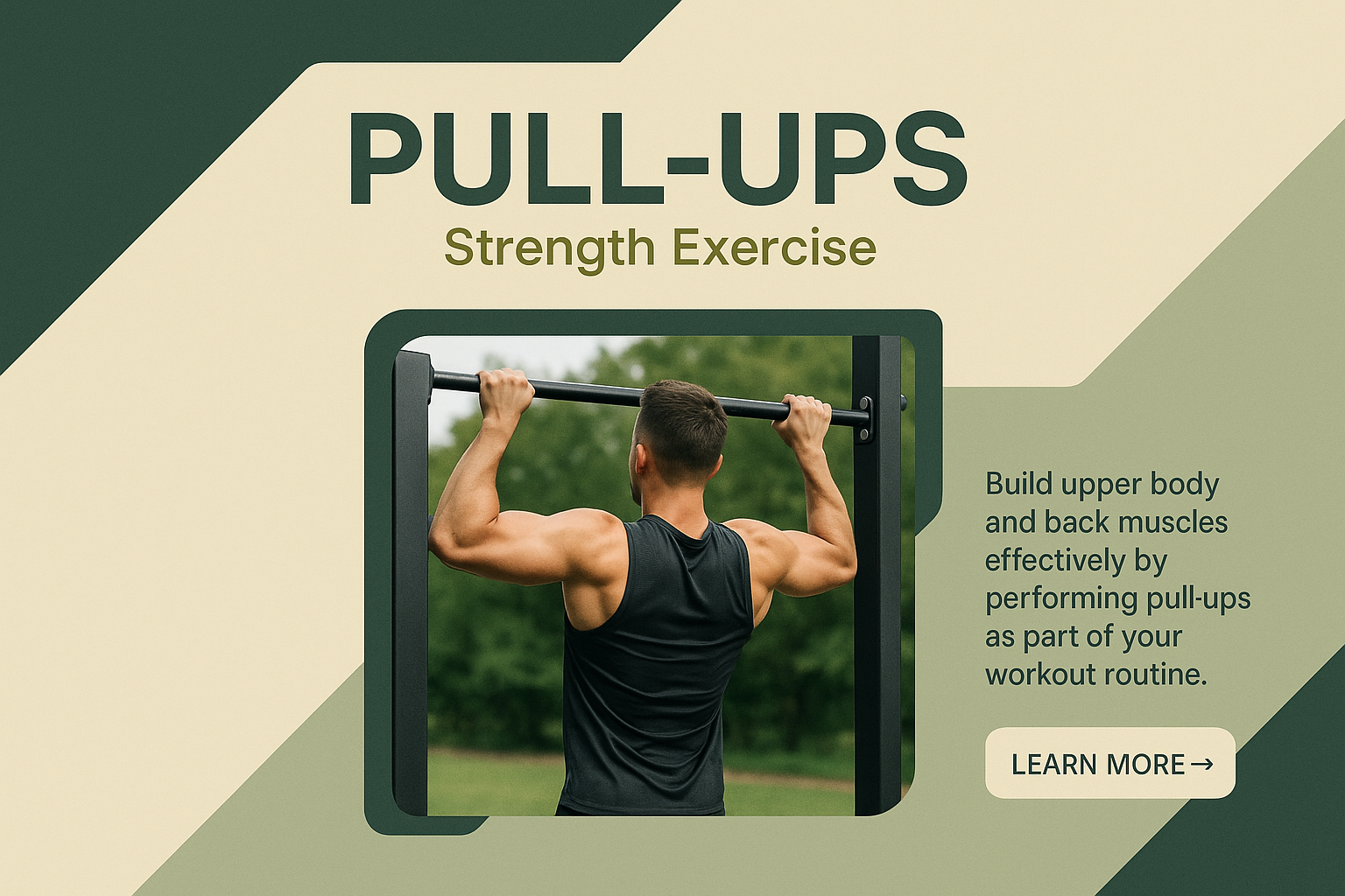 /Collection: /by davooda/Type: PNG/An engaging design featuring a person performing pull-ups, showcasing strength training. The layout includes a clear title, supporting text, and a call-to-action button.