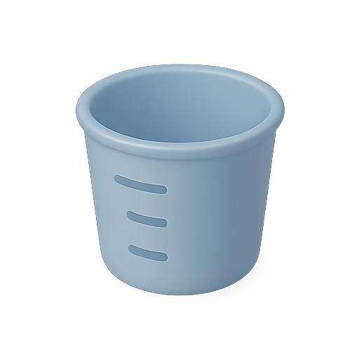 A minimalist blue measuring cup designed for kitchen use, featuring measurement markings. Ideal for culinary tasks and home cooking.