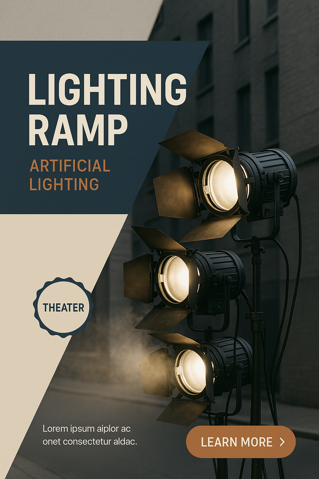 /Collection: /by davooda/Type: PNG/A detailed view of a lighting ramp featuring powerful spotlights designed for artificial lighting in theater and film settings. The image showcases a layered composition with geometric elements.